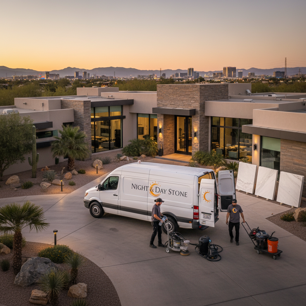 Search for "stone restoration Las Vegas" or "marble polishing Las Vegas" online. Check Google Maps for companies with high ratings and reviews. Ask your neighbors — in Las Vegas neighborhoods with lots of natural stone (common in Henderson, Summerlin, and Centennial Hills), word-of-mouth referrals are valuable.